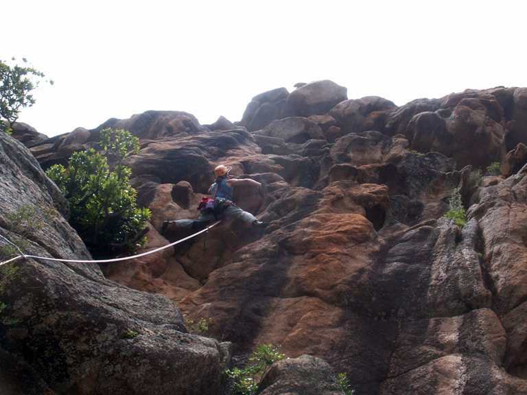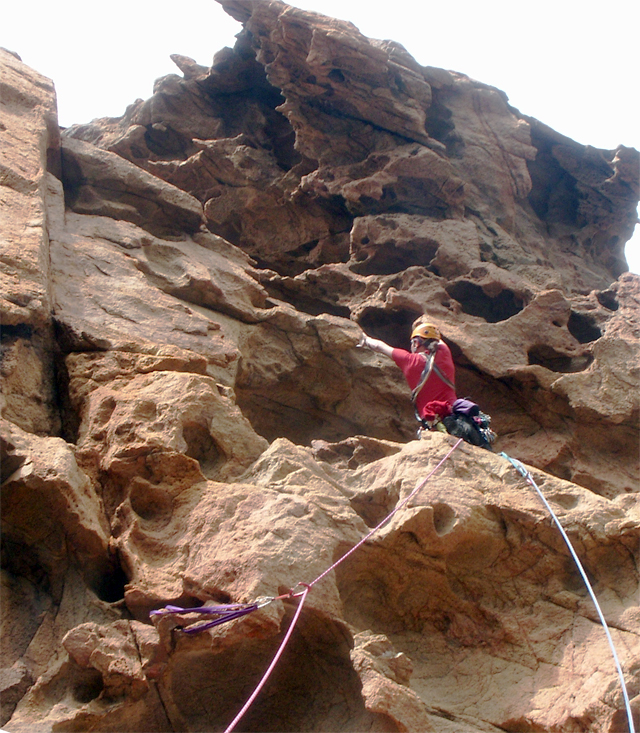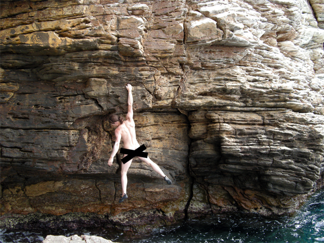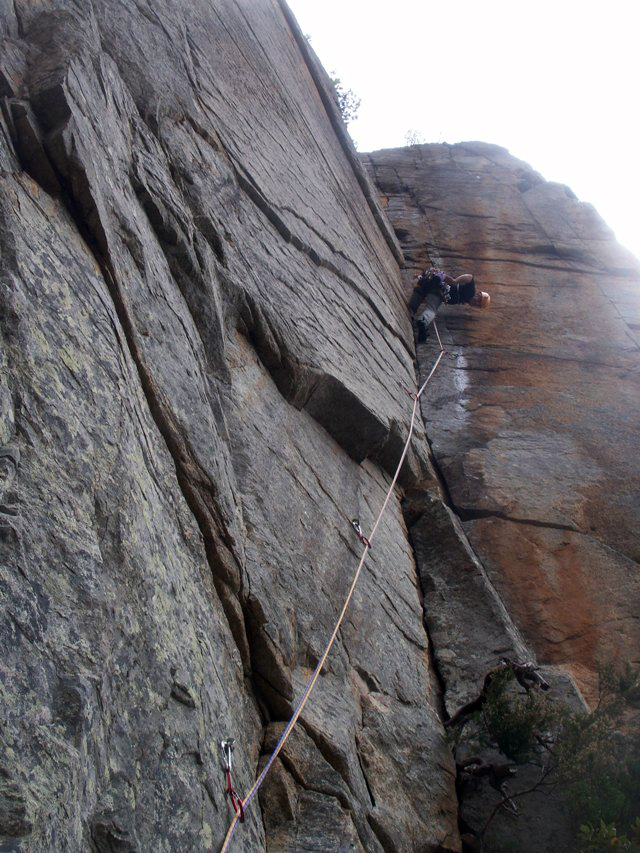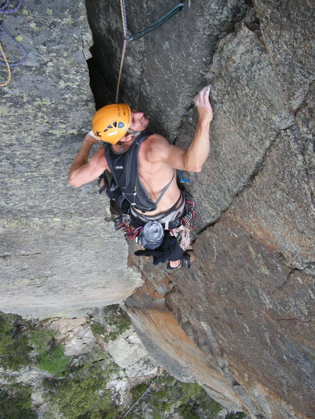 Manuel in einer 5c Länge von der Klin aus fotographiert – die Tritte sind hier schon feucht