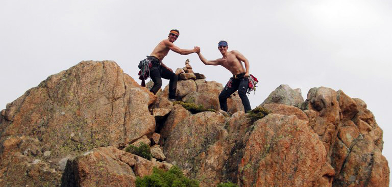 Manuel versprühte aber eine so witzige Stimmung, dass wir nur noch nach oben konnten 🙂 Nass bis auf die Knochen standen wir dann auch alleine am Gipfel, gaben uns einen kurzen Händedruck und machten uns an den Abstieg, damit uns wieder warm wurde.